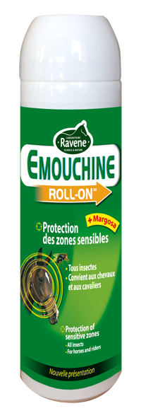 EMOUCHINE ROLL-ON s'utilise sur les zones sensibles comme le ventre, le contour des yeux, les muqueuses et les oreilles du cheval.
