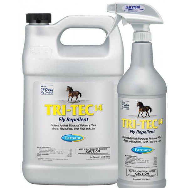 TRI-TEC 14 est un insecticide prêt à l,emploi, contre mouches, taons, tiques, moustiques et autres insectes rencontrés dans l,environnement du cheval. TRI-TEC 14 procure une protection longue durée (14 jours) contre ces mêmes parasites.