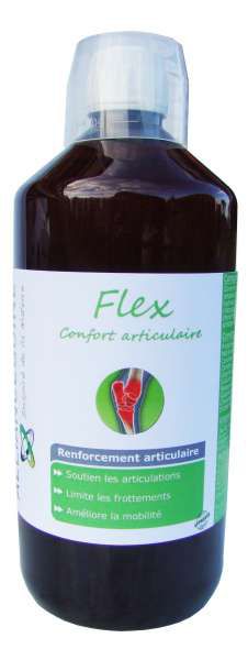 Flex associe des composants d,origine marine et de plantes. Ils agissent en synergie pour diminuer l,inflammation, éliminer les cellules qui forme les tissus endommagés et régénérer les tissus abîmés. Flex accélère et renforce la production de cartilages et de fibres neufs plus résistants. Flex augmente la qualité du fluide synoviale (amortisseur) afin d,améliorer la lubrification et la souplesse articulaire. Aucune contre indication à la compétition.
