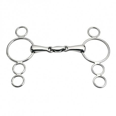 Le mors Pessoa permet de réequilibrer des chevaux dont l'équilibre se porte trop vers l'avant et le bas en facilitant un placer assez haut et une cession de nuque. Disponible en inox et en résine, de la taille 115 à 145.