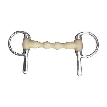 Mors à spatule droit, parfumé à la pomme, caoutchouc synthétique. Les anneaux du mors sont en inox (contient du nickel).