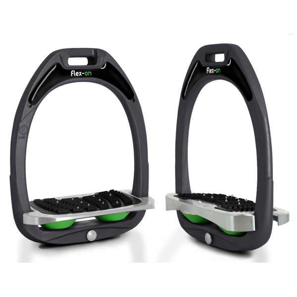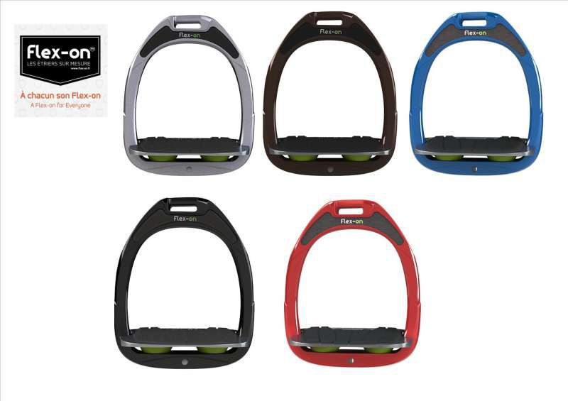 Cet étrier innovant, d,une conception solide et légère, propose : un système d,absorption des chocs (plancher qui repose sur des ressorts élastomères avec des technologies « Gripp » et « Ultra-Gripp »), des formes ergonomiques du plancher et du passage d,étrivière (à la fois décalé et désaxé de l,étrier pour une meilleure connexion avec la monture), un concept de personnalisation unique : My Flex-on (emplacement spécifique pour un sticker personnalisé, choix de la couleur du cadre…).