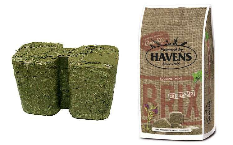 Aliment fibreux composé de fibres de luzerne, et qui se présente en briquettes. Contient également, de la menthe, ce qui confère au produit une très forte appétence. Le niveau élevé en fibres stimule la mastication et la production de salive.