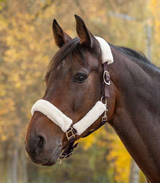 Licol tout doux doublé fourrure synthétique pour un confort optimal. Réglage simple au montant de menton et double à la nuque.