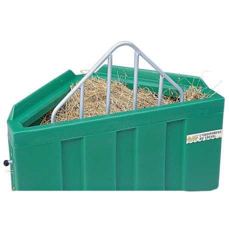 Bénéficie de rebord intérieur anti gaspillag. Permet une distribution de fourrage sans risque de poussière dans les yeux des chevaux.