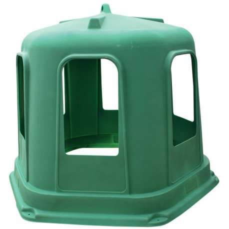 Râtelier de forme hexagonale en résine de polyéthylène,robuste et légers, facile à manipuler à la main ou par engin mécanisé. Dispose de 6 passages de tête avec gouttière, évitant le ruissellement de l'eau vers l'intérieur.