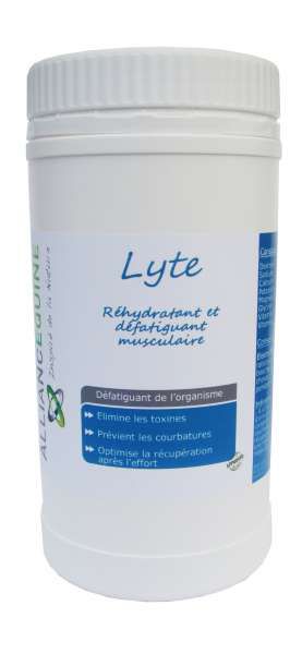 Lyte a été élaboré pour faciliter la récupération du cheval après l,effort, un long transport ou une chaleur intense. La ration journalière du cheval ne suffit pas à couvrir ses besoins en pertes d,électrolytes. Cela risque donc d,entraîner fatigue et déshydratation. Lyte va lui fournir dans des proportions particulièrement étudiées et adaptées :- Électrolytes - Glycine - Vitamine E - Vitamine C - Oligo éléments (Sodium, Calcium) Aucune contre indication à la compétition.