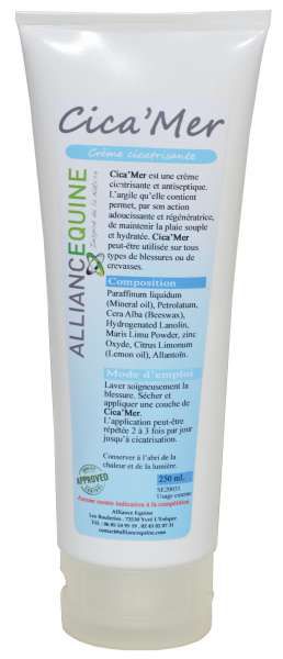Cica'Mer est une crème de soins. L'argile qu'elle contient permet, par son action adoucissante, permet de maintenir la plaie souple et hydratée. Cica'Mer peut être utilisée sur tous types de blessures, de crevasses ou gale de boue.