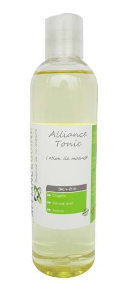 Lotion de massage à l,huile d,amande douce et à l,Aloés Vera pour l,hygiène, la protection de la peau et des tissus externes. Alliance Tonic, grâce à son action régénérante et vitalisante, stimule la circulation sanguine en cas de contusion et d,hématome.