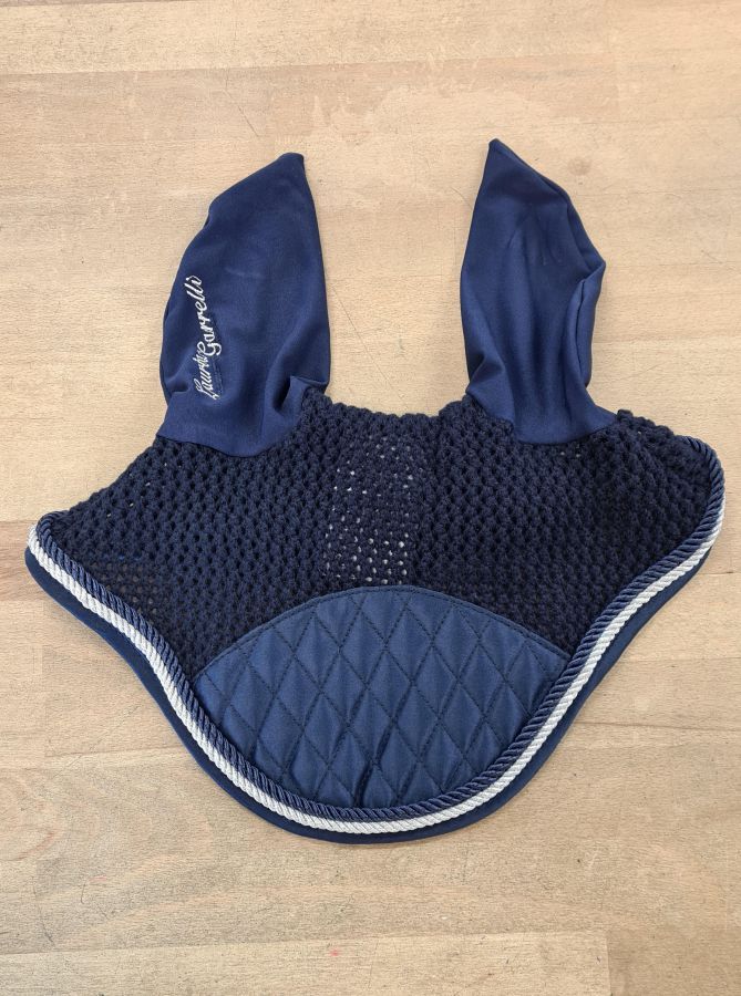 Bonnet bleu marine Lauria Garelli avec cordelette bleu marine et argent.